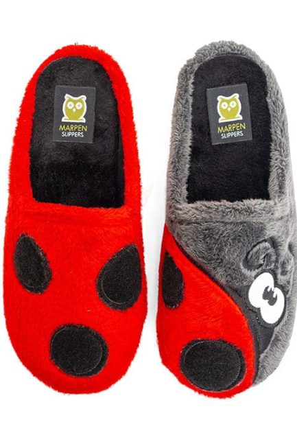 ZAPATILLAS CASA MUJER SLIPPERS MARIQUITA GRIS Y ROJO – MARPEN SLIPPERS