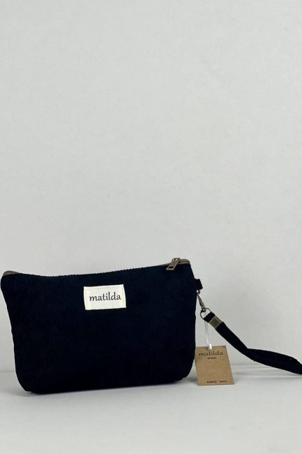 NECESER GRANDE PANA NEGRO, CON CIERRE DE CREMALLERA Y ASA O CORREA – LA MATILDA
