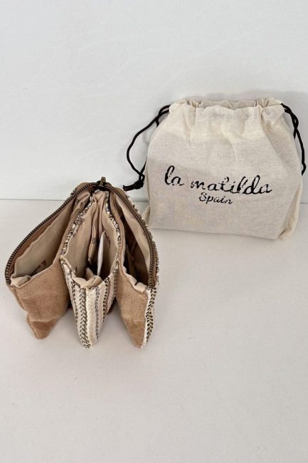 MONEDERO TRES COMPARTIMENTOS LÍNEA ARENA Y CIERRE DE CREMALLERA – LA MATILDA