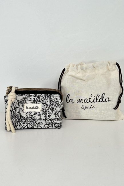 MONEDERO PATTERN NEGRO CON CIERRE DE CREMALLERA – LA MATILDA