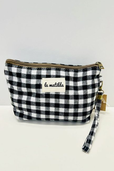 NECESER GRANDE GRINGHAM NEGRO CON CIERRE DE CREMALLERA – LA MATILDA