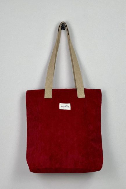 BOLSA TOTE BAG EN PANA BURDEOS. BOLSA CON CIERRE DE CREMALLERA – LA MATILDA