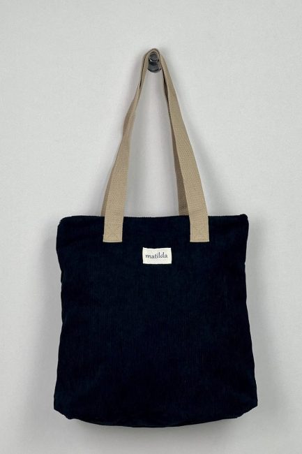 BOLSA TOTE BAG EN PANA NEGRO. BOLSA CON CIERRE DE CREMALLERA – LA MATILDA