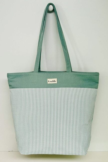BOLSA TOTE BAG GRANDE MARINERA VERDE CON CIERRE DE CREMALLERA – LA MATILDA