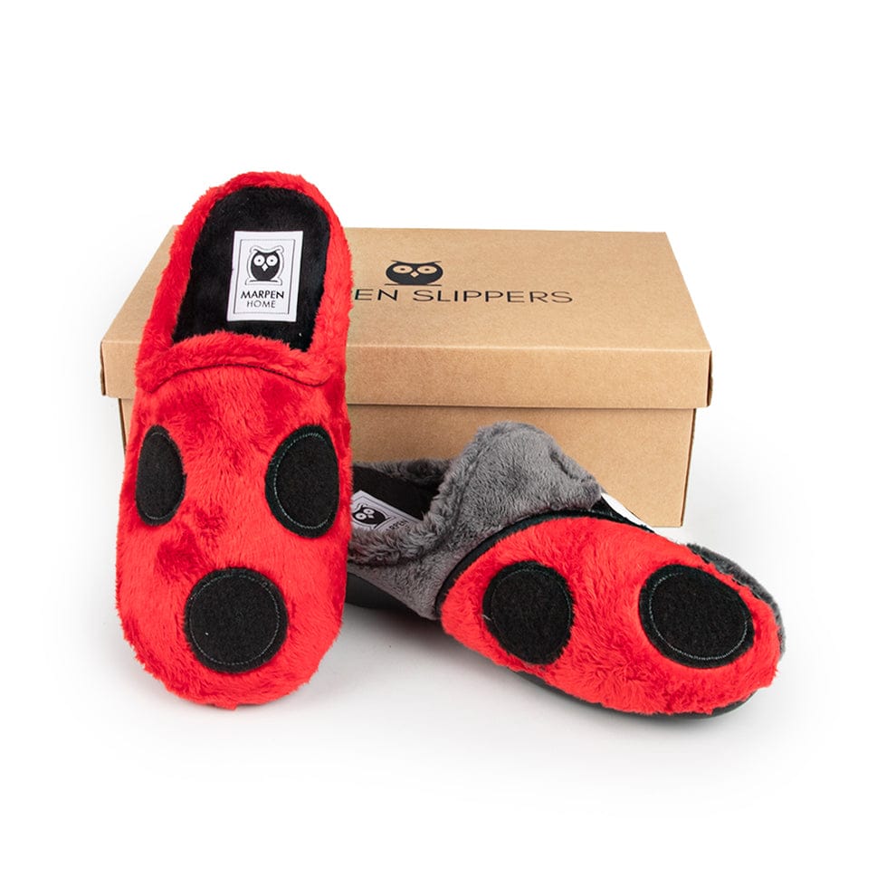 ZAPATILLAS CASA MUJER SLIPPERS MARIQUITA GRIS Y ROJO – MARPEN SLIPPERS
